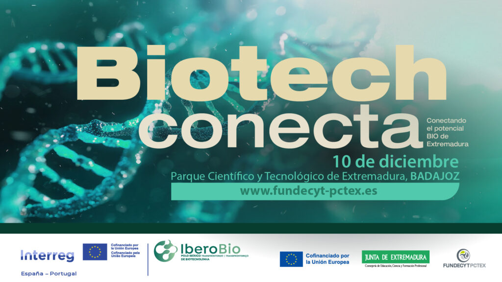 Desde FUNDECYT-PCTEx, a través de la Transferencia Específica Gobernanza de la RIS3 Extremadura 2027 y las EDP’, y del proyecto IBEROBIO, Polo Ibérico Transfronterizo en Biotecnología, queremos invitarte a participar en el evento de “Biotech Conecta: Conectando el potencial bio de Extremadura”, que celebraremos el próximo 10 de diciembre de 2024 en las instalaciones del PCTEX de Badajoz.